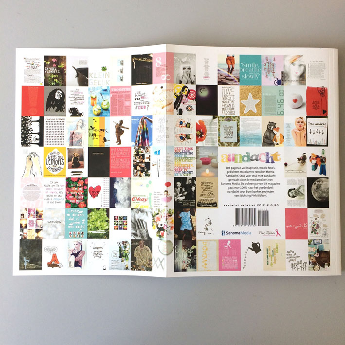 Aandacht - meaning attention is the theme of the 2012 magazine. In Aandacht Magazine 2012 there are 180 themed illustrations. The magazine was created by Sanoma Media to raise money for Pink Ribbon. 6 illustrations were selected for postcards and canvas prints including this illustration of mine that was submitted by freelance project manager Gulika Fakkert.
