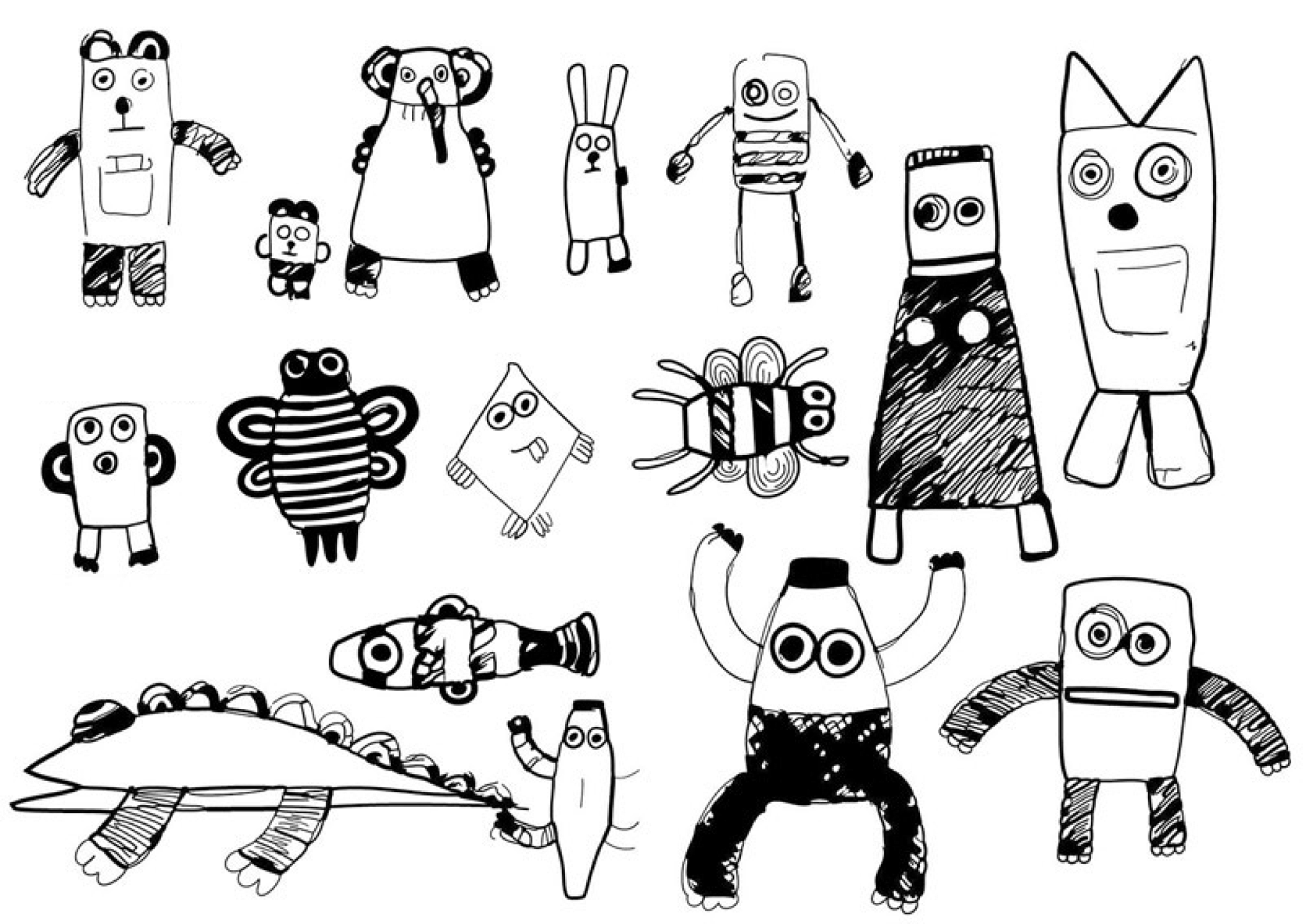 sketches for toy designs inspired by artwork from the studio.
