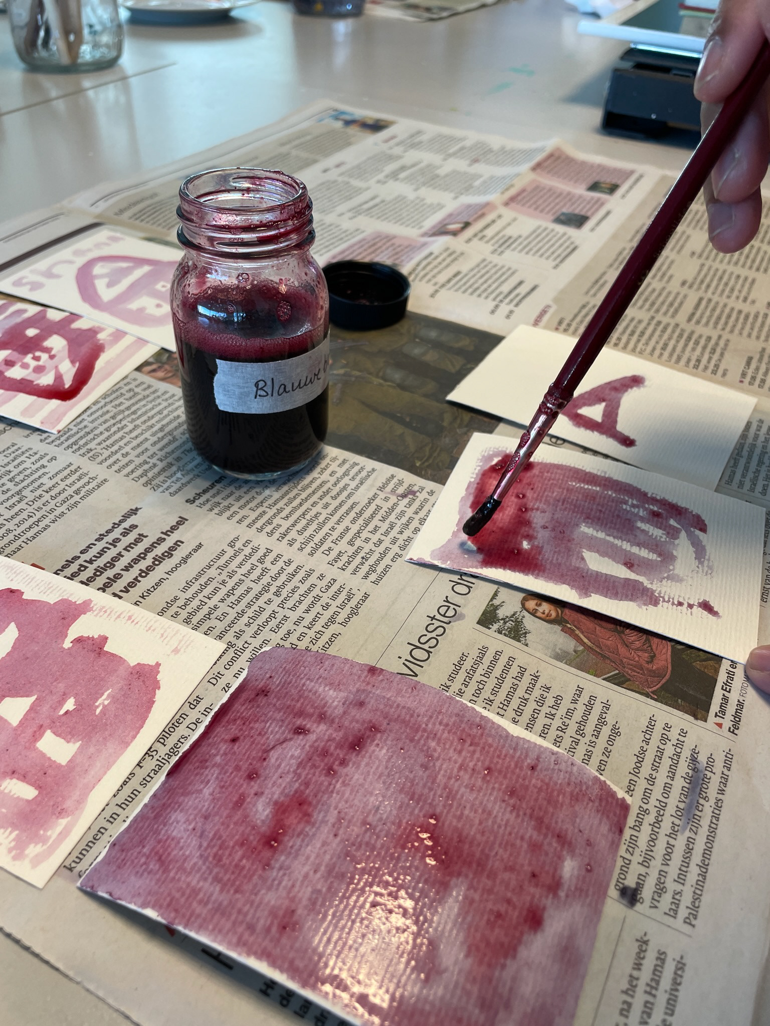 A series of workshops exploring the possibilities of natural inks and ink techniques. This series was for adults with learning dissabilities.