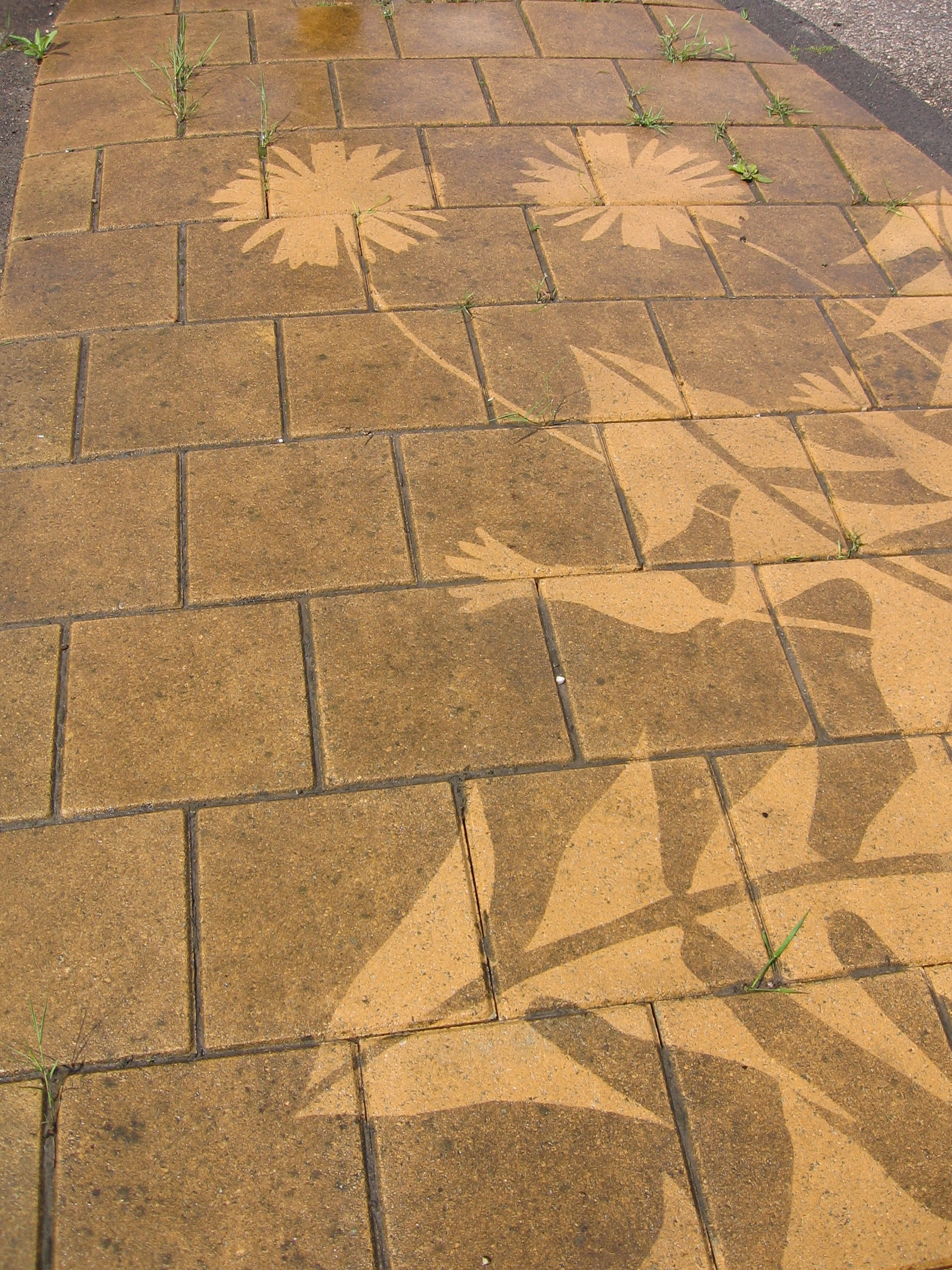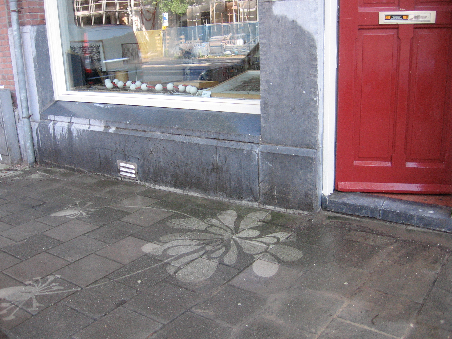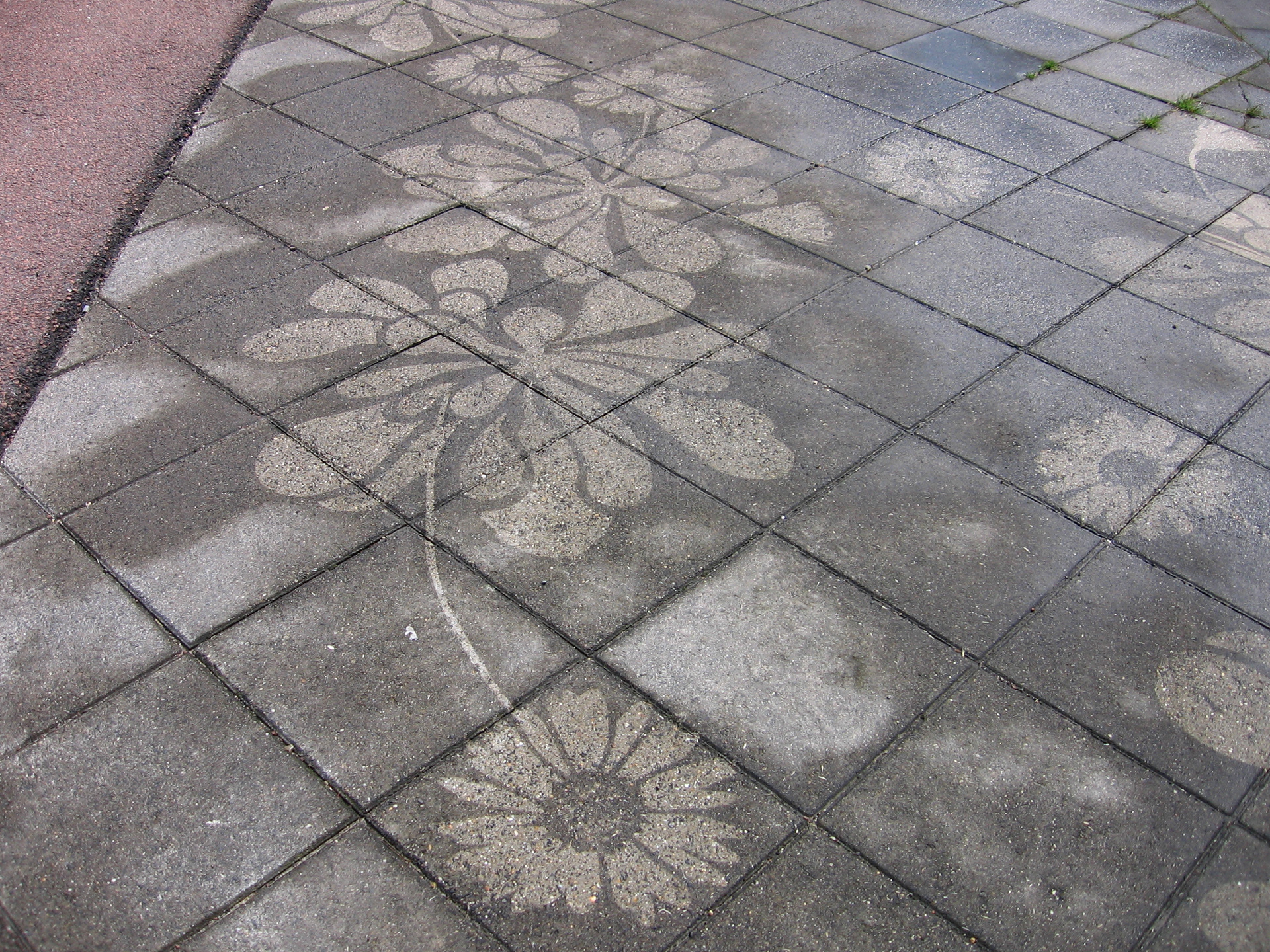 Drawings of the wild flowers that can be found growing between the paving stones are cut into giant stencils. By cleaning the pavement under the stencils large flower patterns are created bringing life to city streets.